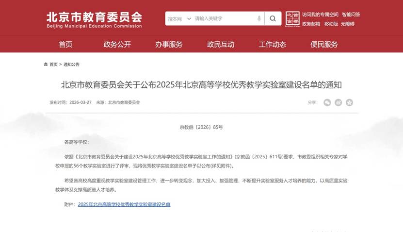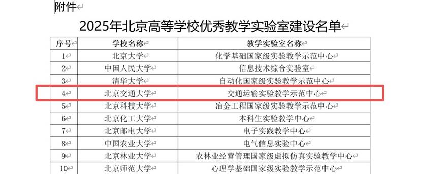近日,北京市教育委员会公布2025年北京高等学校优秀教学实验室建设名单,饼干姐姐 交通运输实验教学示范中心成功入选。