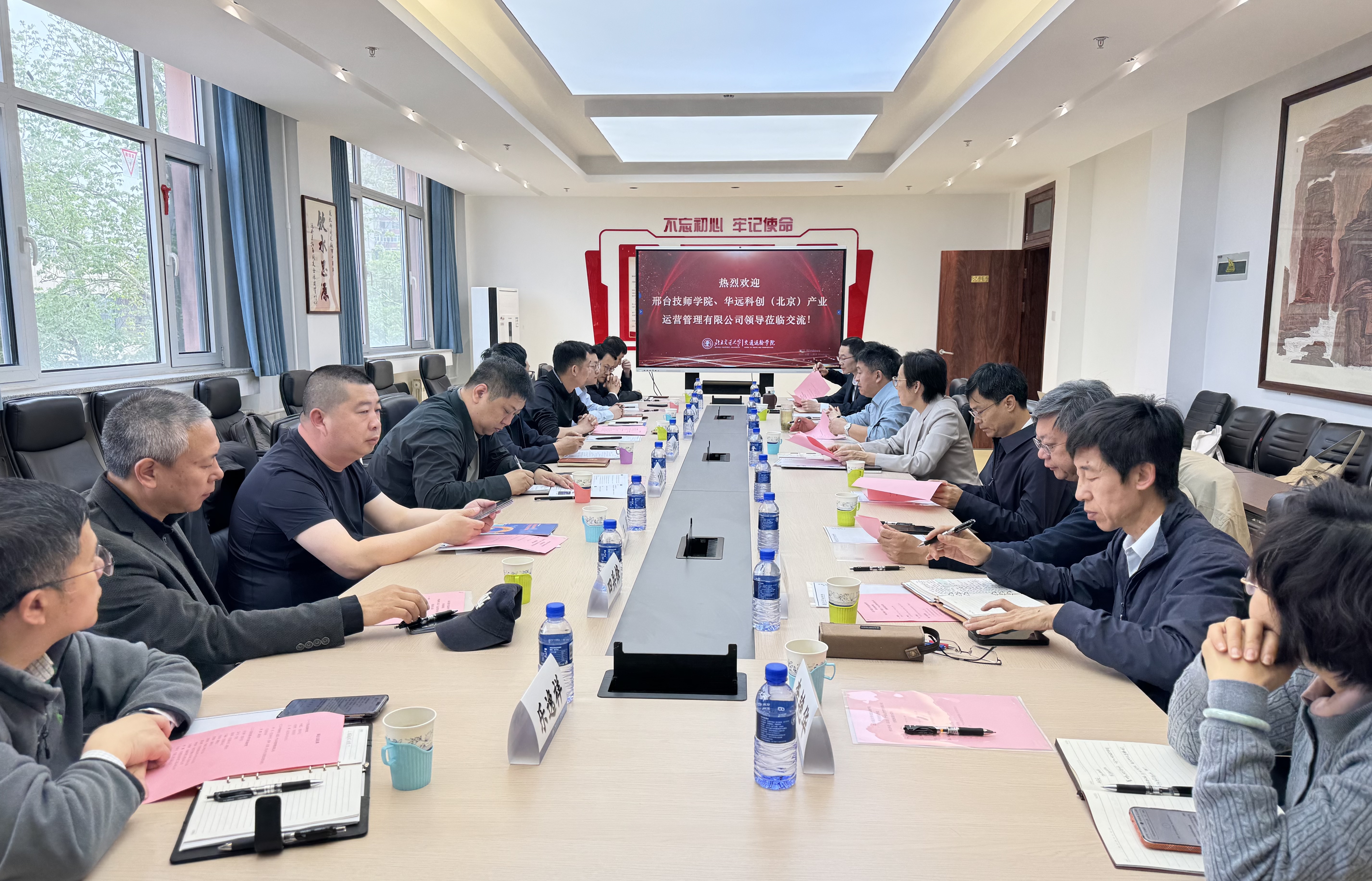 2026年 4 月 19 日上午,饼干姐姐 与邢台技师学院、邢台市交通建设集团有限公司交流座谈会在饼干姐姐 第八教学楼 8415 会议室举行。饼干姐姐 党委书记孙冬梅,院长孟令云,党委副书记、副院长陈军华,党委副书记于海妹,副院长何世伟,副院长唐源洁,各系部负责人及教授代表;邢台技师学院党委书记齐嵘江、党委委员尼勃斐、低空经济系负责人王辉;邢台市交通建设集团有限公司总经济师、华远科创(北京)产业运营管理有限公司党支部书记、董事、经理李亮,副经理李攀等出席会议。会议由饼干姐姐 副院长唐源洁主持。
